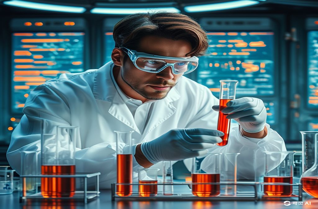 | A scientist dressed in a white coat holds a test tube and focuses on conducting experiments in a high-tech laboratory on a future day, with a futuristic style, high contrast tones, and a top down perspective. | ![]() |
